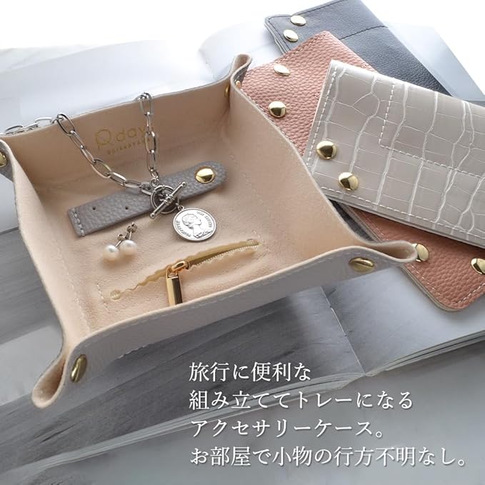 [R-days代官山] 持ち運び アクセサリーケース トレイ 収納 レディース 旅行 ピアス イヤリング ネックレス 指輪 携帯用 ジュエリーケース トラベルトレイ コンパクト 薄型 おしゃれ シンプル (グレー/リボンなし包装)
