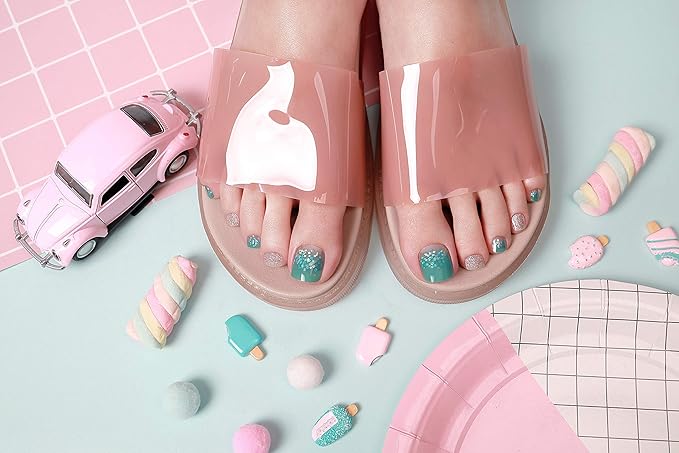 30枚入り フットジェルネイルシール 貼るだけでOK セルフでサロン並みの仕上がり (きらきら星ミント)