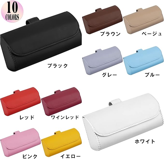 レザー素材を使用した、シンプルで上品なデザイン。場所をとらないスリム設計なので、コンパクトカーにもぴったりです。車内コーディネートが楽しくなる、豊富なカラーバリエーションも魅力!自分の好きな色を選んだり、車やサンバイザーのカラーに合わせたりと、カーインテリアにこだわっている方にもお勧めです。<br>