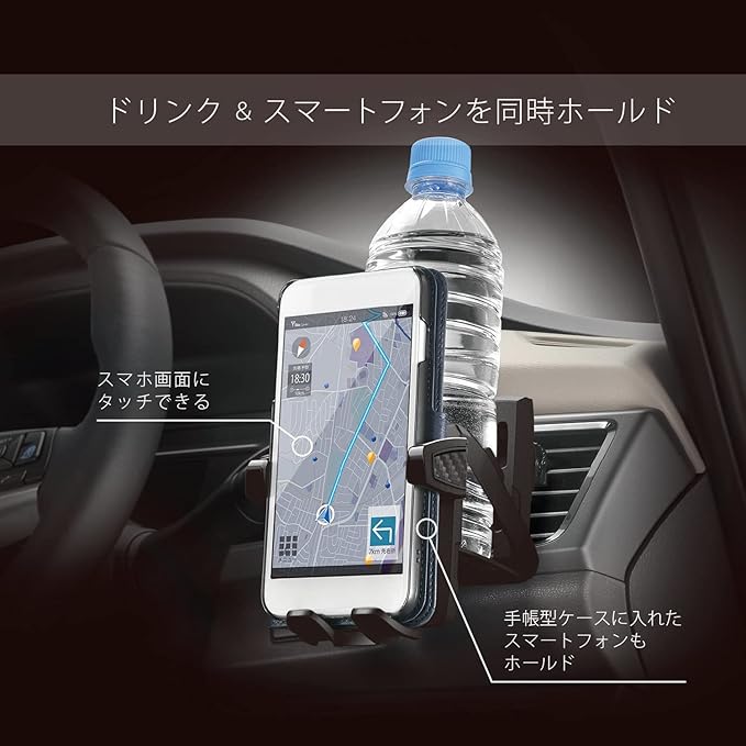カーメイト ドリンクホルダー スマホタッチ 手帳ケース対応 ブラック DZ477