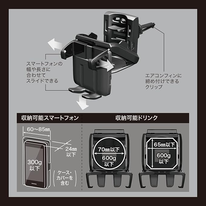 スマートフォンの幅(60~85mm)に合わせてスライドできます