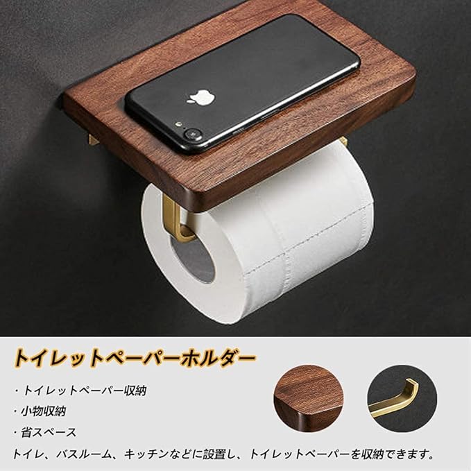 【商品仕様&品質保証】商品サイズ:(約)16cm 11cm 10cm。重量:(約)284g。耐荷重:10kg。材質:天然木、真鍮。パッケージ内容:トイレットペーパーホルダー、3Mベルクロ、接着剤、取り付けネジ。この商品は半年の品質保証があります。もしお客様は製品に対して何か質問と意見があれば、ペーパーホルダーに何らかの異常がございましたら、お気軽にメールでお問い合わせください。弊社は絶対お客様の問題を解決します。ご安心に購入してください。