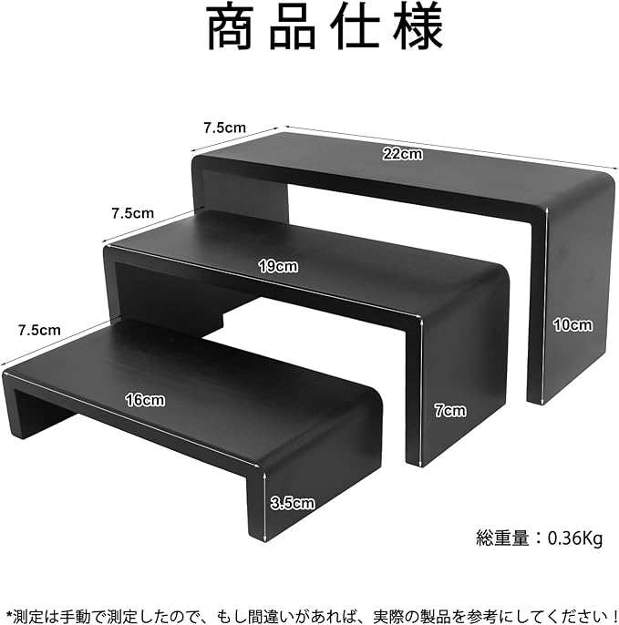 ◎【商品仕様】3つのサイズの高さが違うものを組み合わせるセットです。各のサイズ:16x7.5x3.5cm、19x7.5x7cm、22x7.5x10cm。厚さ:1cm。推奨重量は45kg未満おすすめです。