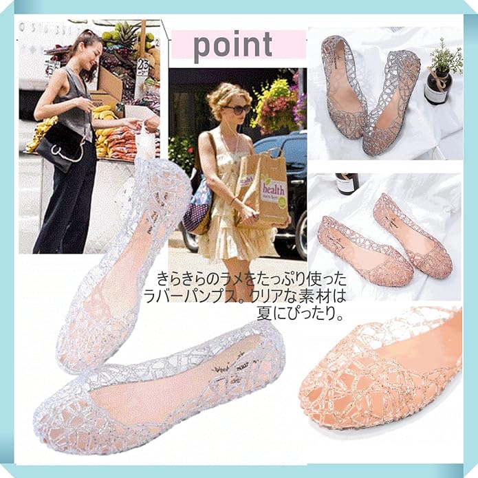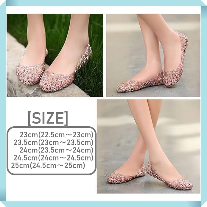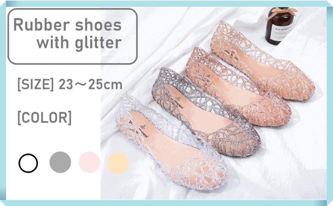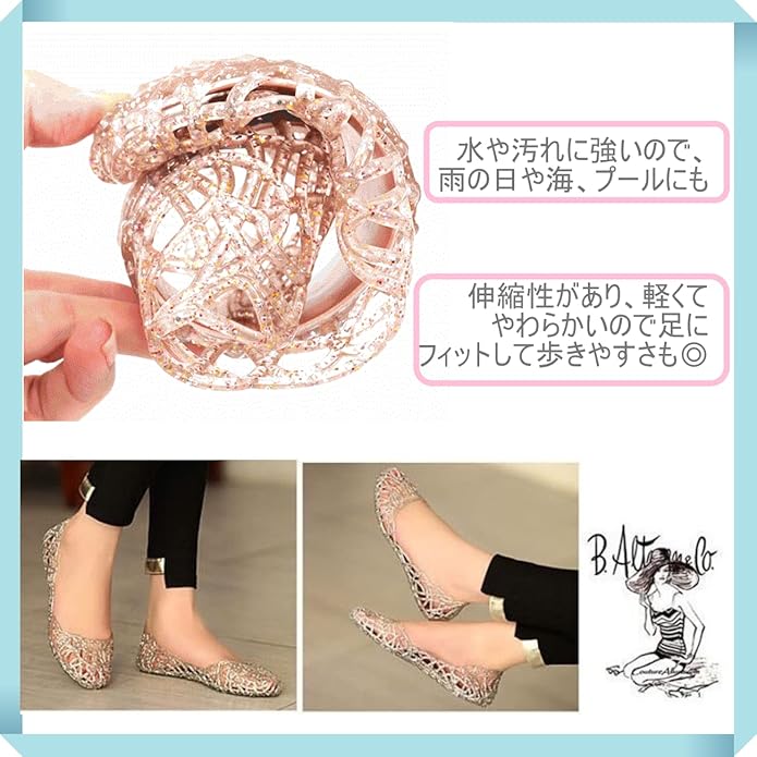 [1/2plus] レディース ラメ 入り アクアシューズ 23~25.5cm 水陸両用 軽量 折りたたみ コンパクト 晴雨兼用 レインシューズ 4色展開