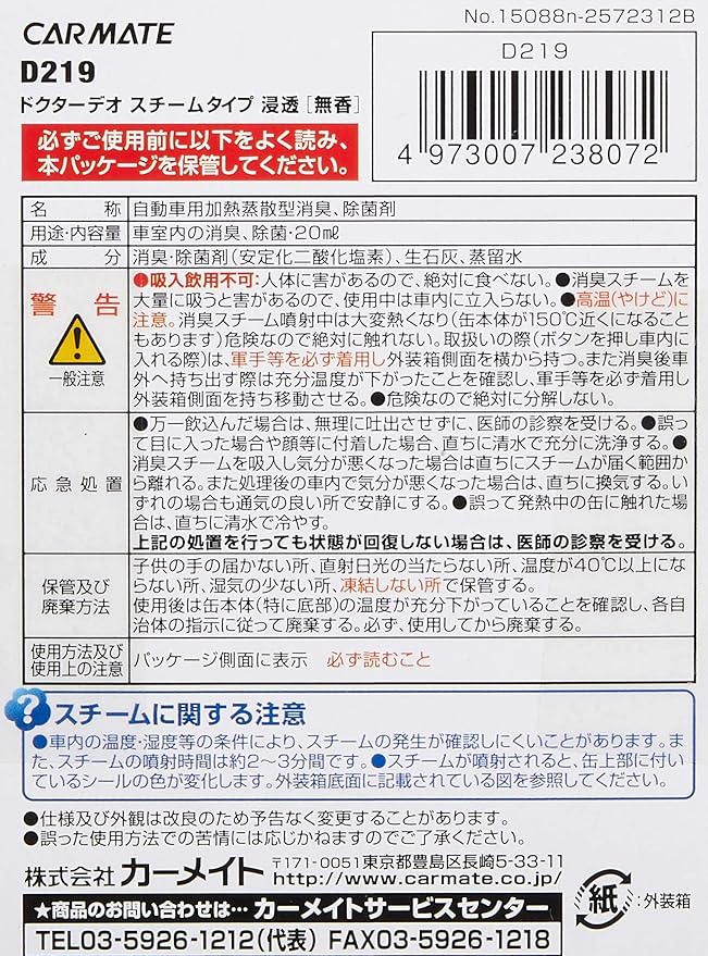カーメイト 車用 消臭剤 ドクターデオ(Dr.DEO) スチーム 浸透タイプ 置き型 無香 安定化二酸化塩素 190g D219