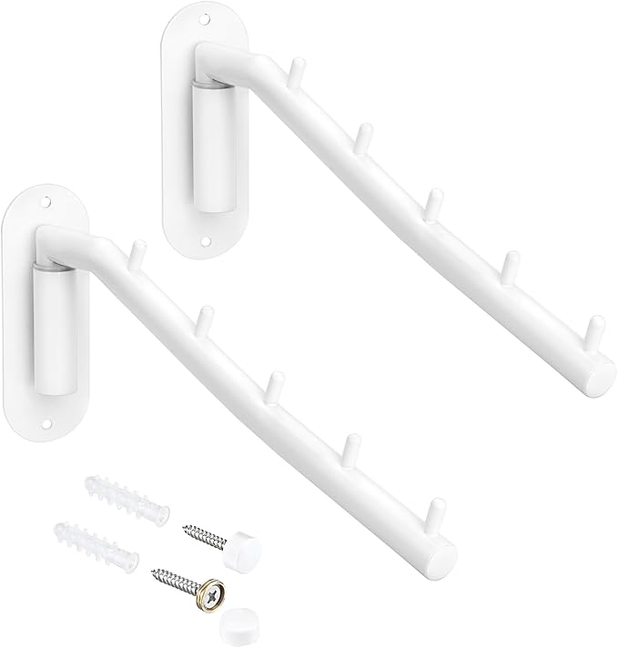 Sumnacon 折り畳み 壁掛けハンガーラック ウォールハンガー 壁掛けフック 5連 ステンレス 180度 角度調整可能 省スペース トイレ キッチン 寝室 屋外 ホワイト(2個セット)