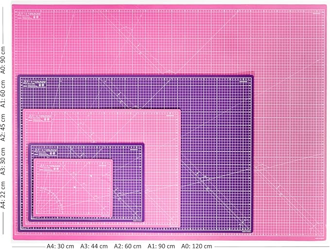 製品情報:サイズはA0 (120 cm x 90 cm)/ A1 (90 cm x 60 cm)/ A2 (60 cm x 45 cm)/ A3 (44 cm x 30 cm)/ A4 (30 cm x 22 cm)とご用意。厚みはそれぞれ3mmの5展開です。 ピンクと紫の両面仕様により、見やすさと目へのやさしさを実現しています。