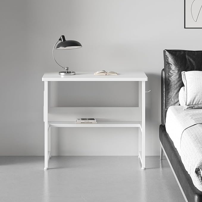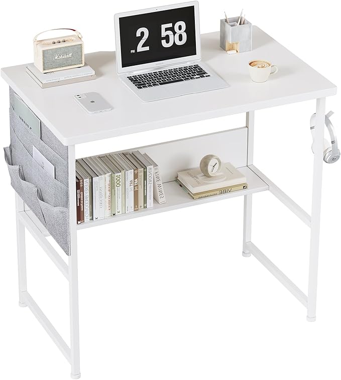 デスク パソコンデスク 机 pcデスク 幅80cm 勉強机 収納袋付き学習机 オフィスデスク 作業机 モニターアーム取付対応 組立簡単 白い