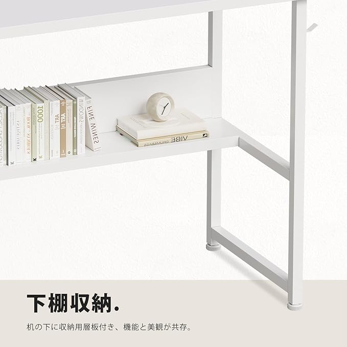 【収納性抜群】収納一体型で空間利用率UP!デスクの下にラック、イヤホンフック、サイドポケットも備え、本、辞書、CDなどの収納にとても便利です。仕事用のパソコンデスクだけでなく、子供の学習机としても最適です。