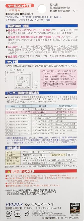 エヴァリス プリセットオートヒーター ST 15W 観賞魚用