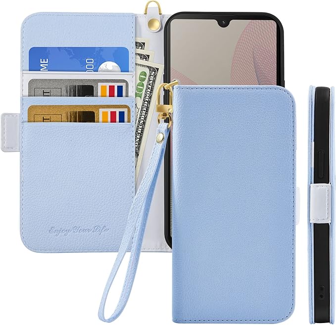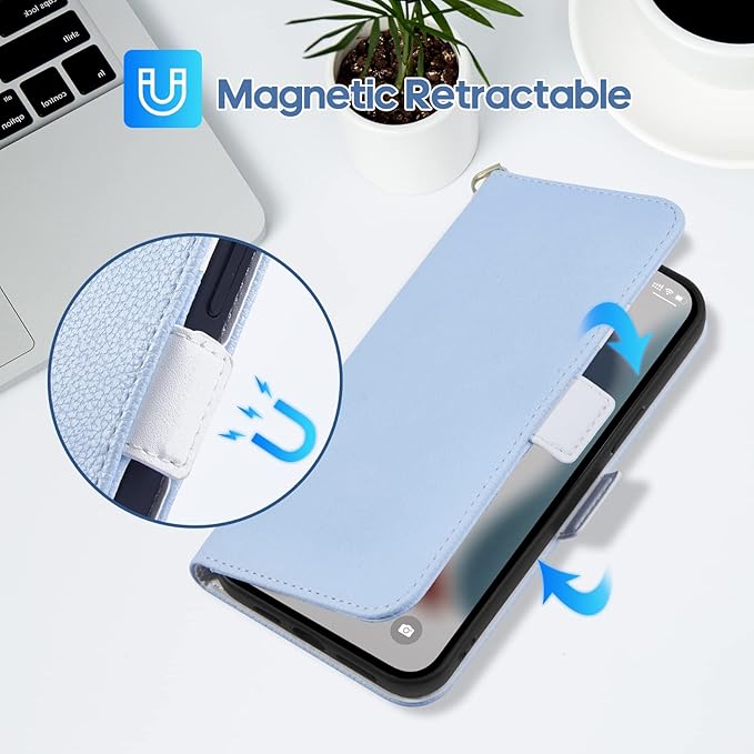 対応 Sharp AQUOS sense7 ケース 手帳型, シャープ アクオス sense7 SH-53C docomo/SHG10 au 用 カバー, 人気おしゃれ財布型カード収納 携帯ケース, ライチ柄高質PUレザー 良い触り心地 ケース サイドマグネット式 スマホケース スタンド機能 耐衝撃 保護カバー 大人 男女兼用 (ライトブルー/Light blue)