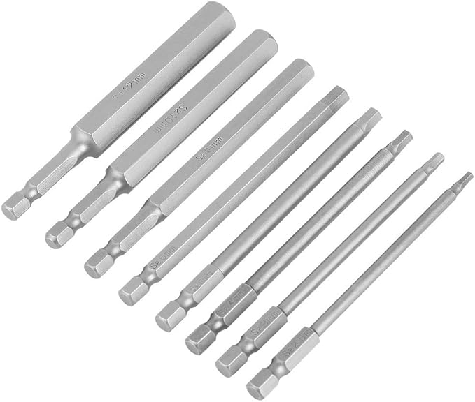 Hilitand 六角ビットセット 全長100mm シャンク径6.35mm マグネット入り 2.5/3/4/5/6/8/10/12mm 各1本 8本組 ドライバービット