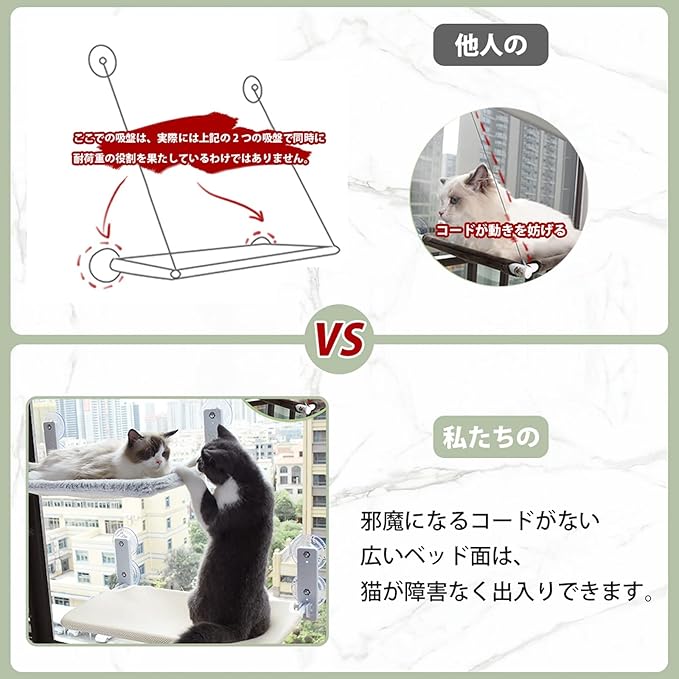 【取り付け簡単】:吸盤で取り付け簡単、高さ調節が可能!窓ガラスに強力吸盤をぴたっと貼り付けるだけで簡単に組み立てできる猫専用テラスです。窓ガラスを傷つけないように! 吸盤式なので、猫ちゃんの成長に合わせて装着する高さを簡単に変えられ、窓や壁を破る必要はないです。