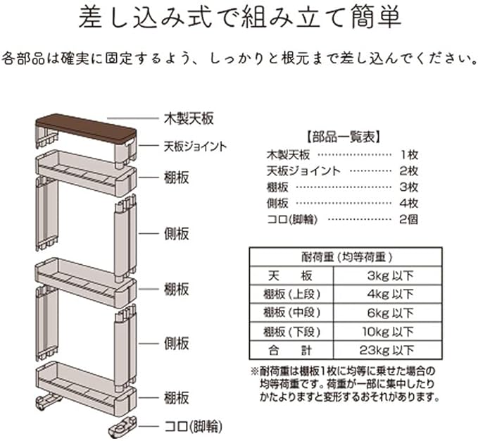 サイズ:幅12.5 奥行45 高さ85.3cm、重量:2kg、材質:本体=ポリプロピレン、天板=木、生産国:日本