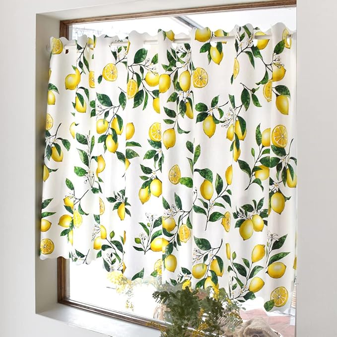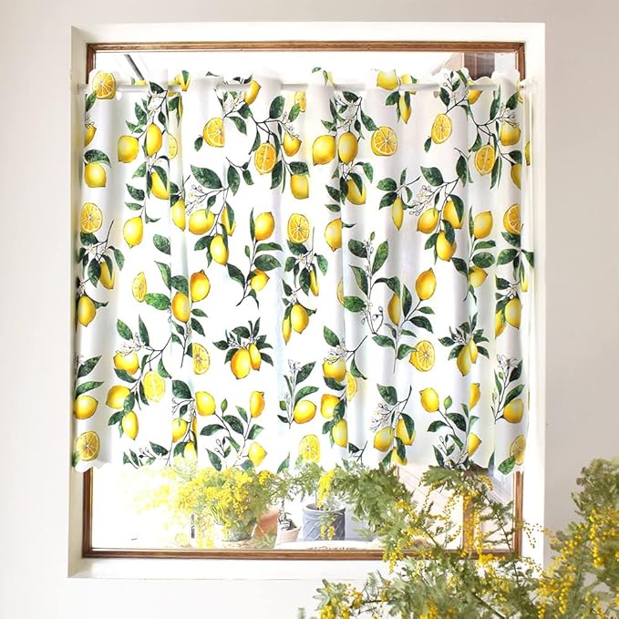 スタイルデコール(STYLE Decor) カフェカーテン ラミネート 小窓用 おしゃれ 目隠し 70cm丈 幅100cm お風呂 レモン イエロー フルーツ柄 W4001810