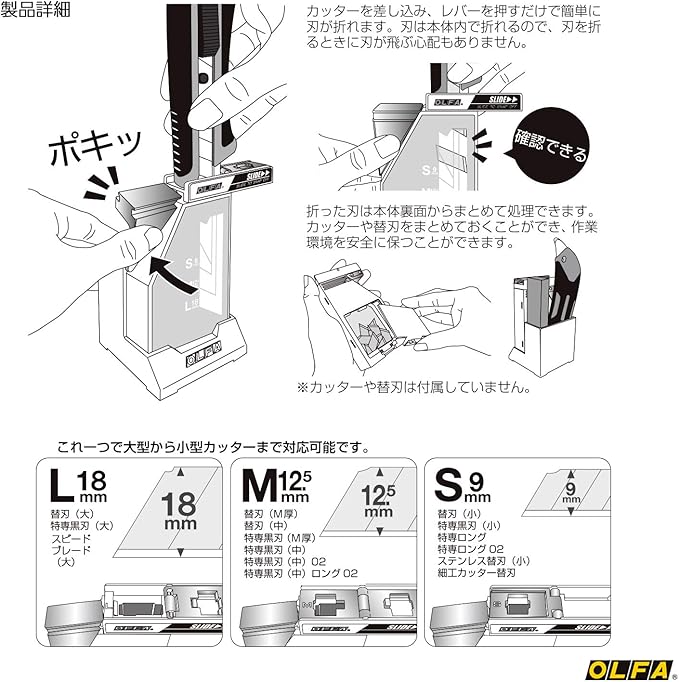 ・軽い力で恐怖感なく刃を折ることができる刃折器