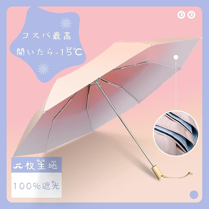 Dlin 折りたたみ傘 レディース 雨傘 大きいサイズ 晴雨兼用 折り畳み傘 軽量 二枚生地 日傘 uvカットUPF50+ 遮光 5級撥水 速乾 耐風 日傘兼用雨傘