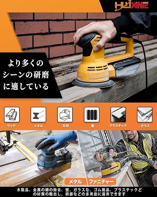【用途】:広く木製品、金属の錆の除去、壁、木材のバリ取り、ガラスな、ゴム製品、プラスチックどの材質の艶出し、研磨などの多用途に適用できます