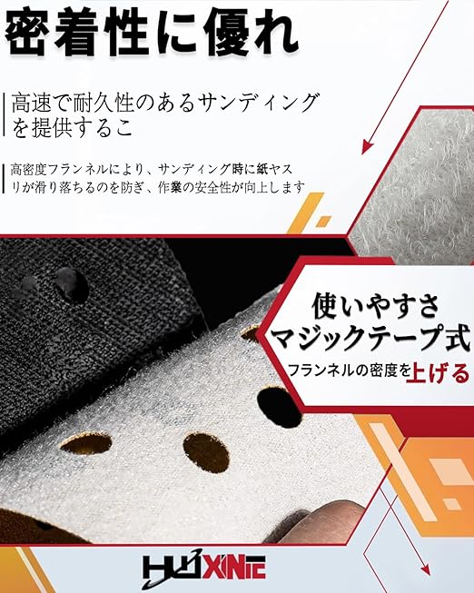 【マジックテープ式】:マジック式研磨紙で簡単に交換ができます、密着性に優れ 高速で耐久性のあるサンディングを提供することで、集塵用に8つの穴を事前に打ち抜きます 穴の位置も正確でした目詰まりしにくいです