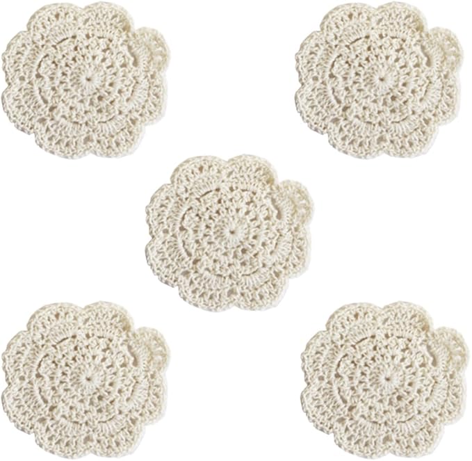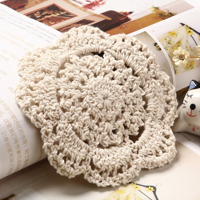 コットンかぎ針手編みコースター 欧風コースター 断熱パット ランチョンマット 鍋敷き かぎ針手編み 吸水 洗濯可能 コットン糸 ベージュ (B-5個入)
