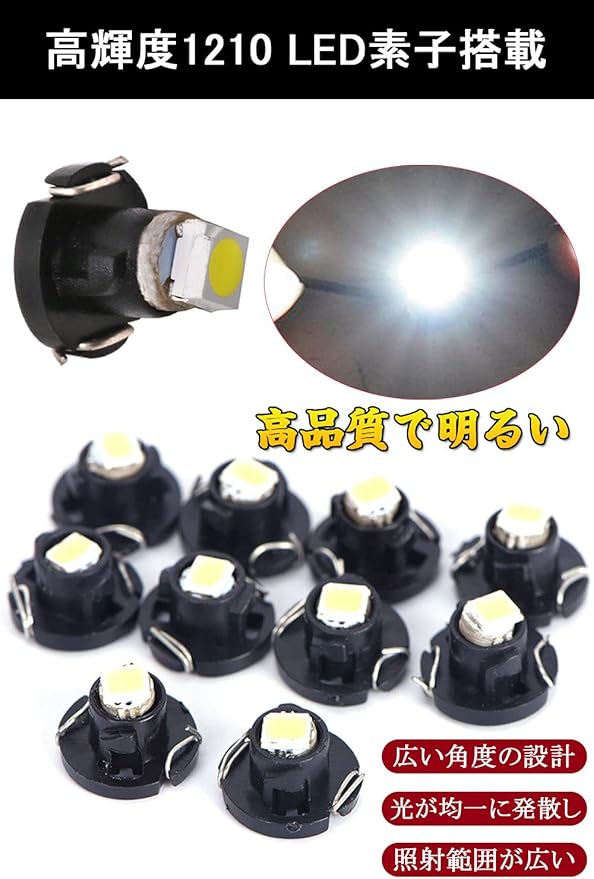t4.2 led 拡散 LED ライト ダッシュボード メーターパネルライト 電球 計器灯 1210 1SMD led ホワイト DC12V 取付簡単 自動車、オートバイ、スクーター、トラック、トレーラー、RV、ボート/ホワイト 10個入り