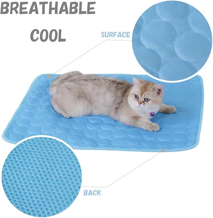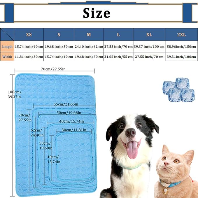 ペットが寝ているか横になる場所に冷却パッドを置きます。横になるとすぐに、体温が下がり始めます。 表面素材のクーリングパッドとしてアイスシルク素材を使用しているので、ペットは触ると涼しくなります。 肌触りが良く、冷たい感じで夏の猛暑を一気に和らげます。