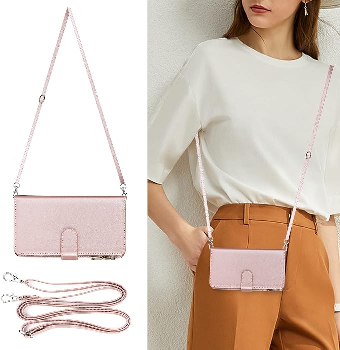 【クロスボディチェーン&リストストラップ】調節可能ショルダーストラップ長さ1.5メートル、可斜めがけ、可肩掛け。携帯電話が紛失する恐れはなし、ハンドバッグを持たずにどこでも旅行の贅沢さを満喫できます。ケースだけが必要な場合、ストラップは取り外し可能です。