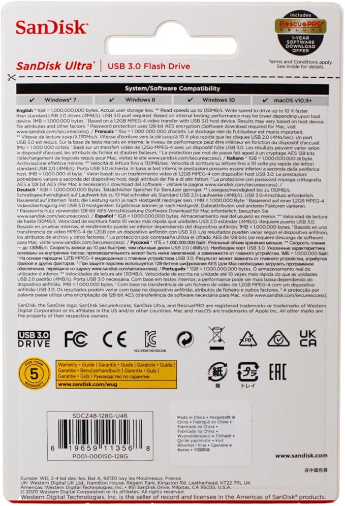 SanDisk SDCZ48-128G 128GB USB 3.0 Compatible Flash Drive, Maximum Transfer Rate: 100MN/s