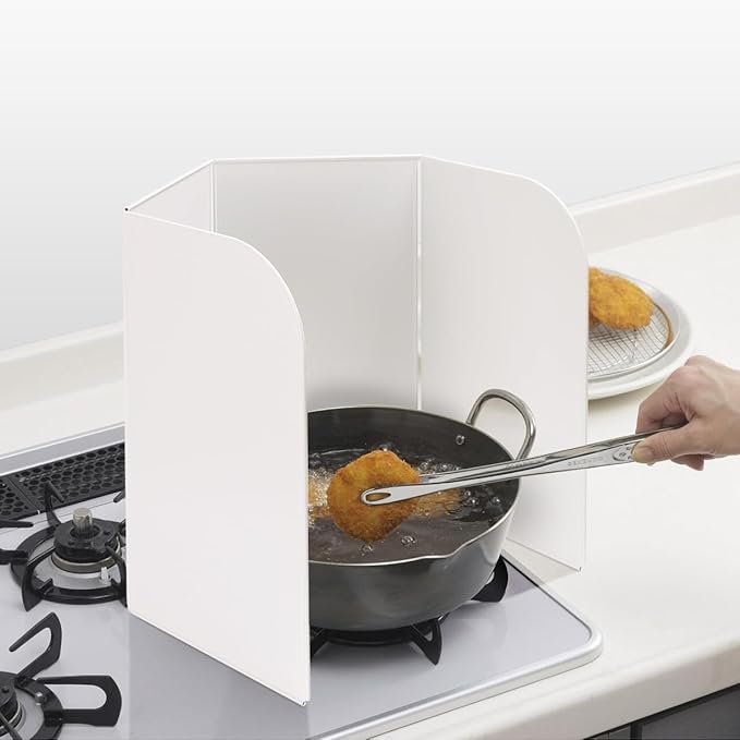 「油ハネを防ぐ4面式」■サイズ /真っ直ぐ広げた時:(約)幅73 奥行0.3 高さ32cm 折りたたんだ時:(約)幅18 奥行1.1 32cm ■材質 /本体:スチール・(表面フッ素樹脂加工) ※商品改良のため、仕様・デザインなどは予告なく変更する場合があります。予めご了承いただきますようお願い申し上げます。