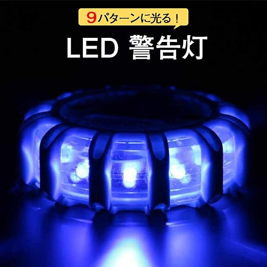 シャンディニー 警告灯 led 点滅ライト 車 電池式 9灯 常夜灯 表示灯 回転灯 マグネット付き 緊急時 夜間 防水 工事現場 携帯ライト ブルー 1個