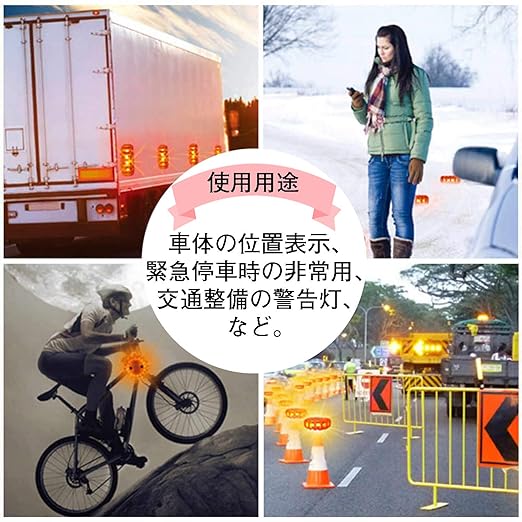 【 高輝度LED安全ライト】 とても目立つ明るさで、事故防止に役立つこと間違いなし! 夜間の走行や緊急時に最適な高輝度LEDフレア型警告灯です☆ 360度全方位に強力発光し、車やバイク、自転車の存在をしっかりアピール◎ 9個のLEDが多彩に点灯し、暗い場所でも遠くからよく見えます。