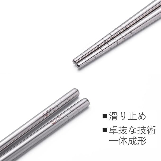 TITECOUGO 純チタン箸 滑り止め 超軽量 キャンプ 箸 無塗装 中空構造 専用箸袋付き 1膳/2膳