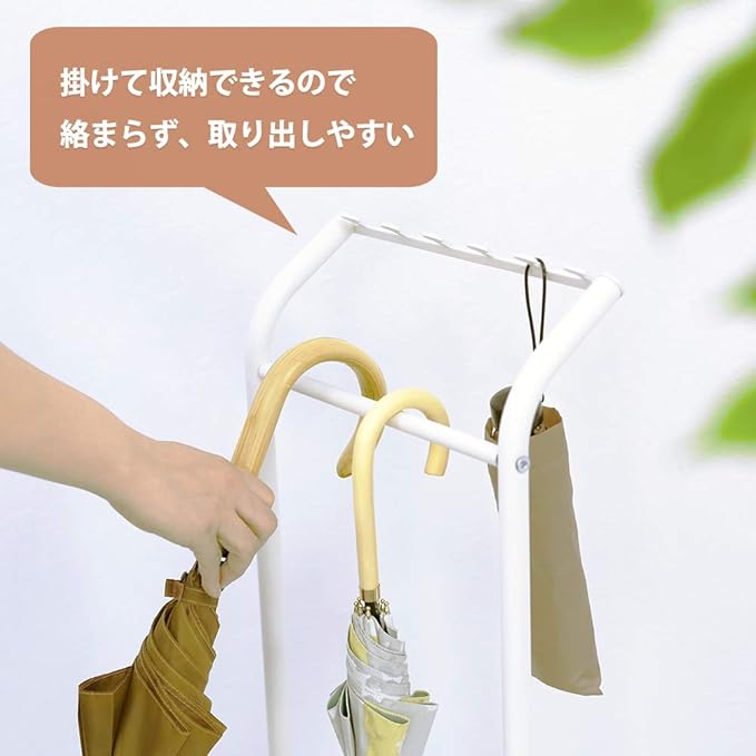 傘を立てずに掛けて収納。傘同士が絡まず、取り出しやすい