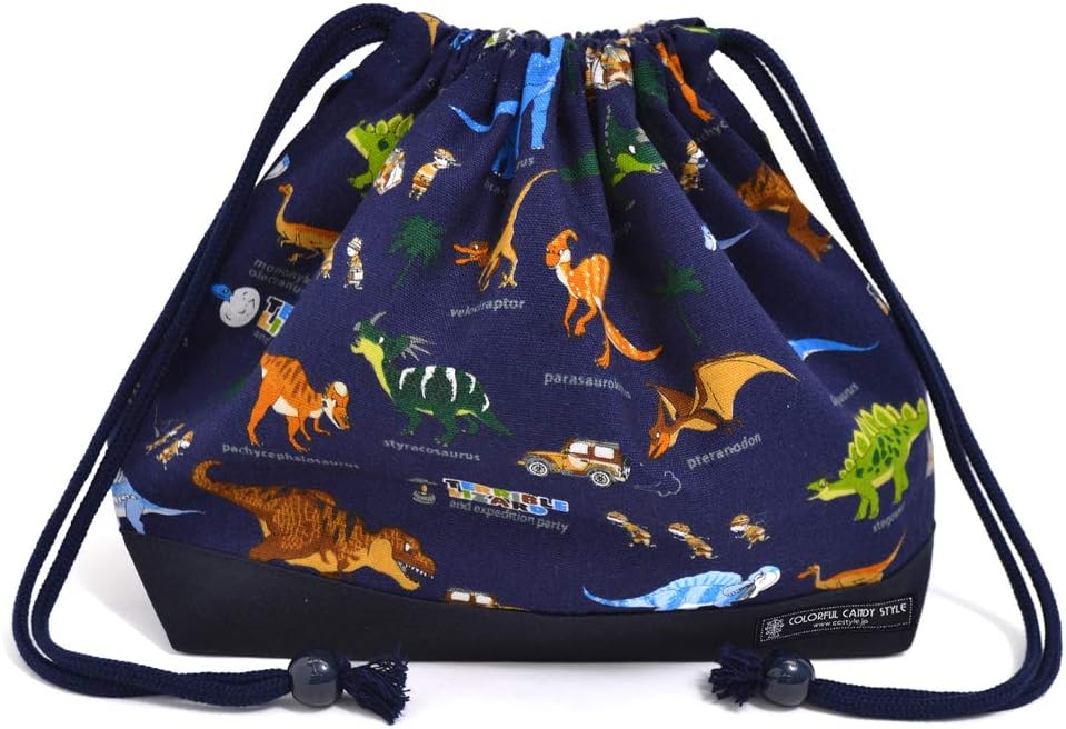 COLORFUL CANDY STYLE 巾着 中 マチ有りお弁当袋(ネームタグ付き) 男の子 はたらく車 くるま 恐竜 動物 どうぶつ 子供 おしゃれ マチ付き かわいい | ryouhinshop
