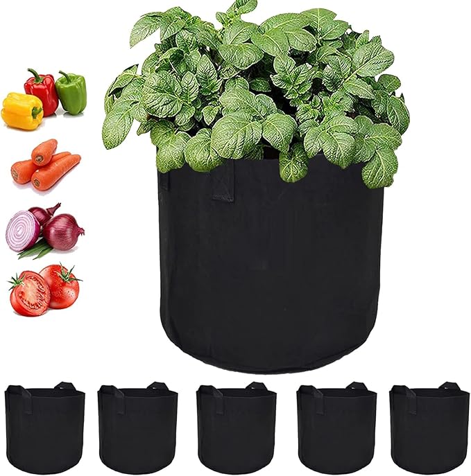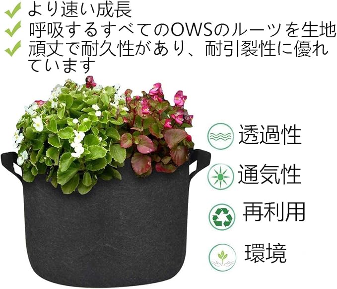不織布ポット5ガロン不織布プランター 植え袋 栽培袋 布鉢 植木ポット 園芸 ガーデン ベランダで栽培 植物育成 野菜栽培 家庭用 発育促進 大容量 くて持ち運びやすい6セット(高さ25cm 直径30cm)