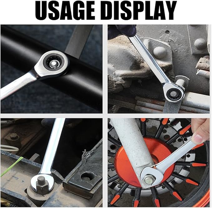 180度フレックスヘッド:首振り式なので狭い場所でも作業性が抜群です。フレックスヘッドを採用して、送り角度5 を実現して、自由なオフセット角での作業が可能です。表面処理:鏡面仕上げで美しく見られて、肌触りがよく重量感もあります。錆びにくいです。送り角度は5 で、狭い場所に作業が抜群です。180度フレックスヘッド採用で、窮屈な場所でも完璧なオフセット角を設定できます。自動車、自転車、バイク、工場機械などのボルト・ナット着脱に専用。自宅の点検やメンテナンスにもよく使う工具です。