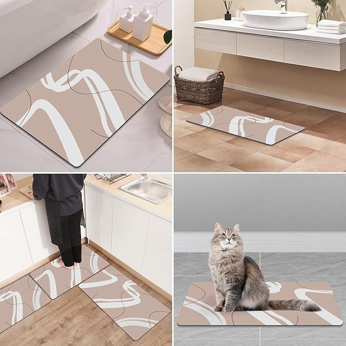 【2023 最新の珪藻土バスマット】 従来の硬い珪藻土バスマットと違って、進化したソフト珪藻土のバスマットは冷たくない、割れない、柔らかくてスポンジを踏むような感覚、踏み心地がいい。表面には柔らかくて通気性があるナノマイクロファイバーを使い、吸水速乾、抗菌消臭を実現! 0.4cmの極薄タイプなので床の段差や歪みなどを気にせずどこでもお気軽にご使用いただけます。