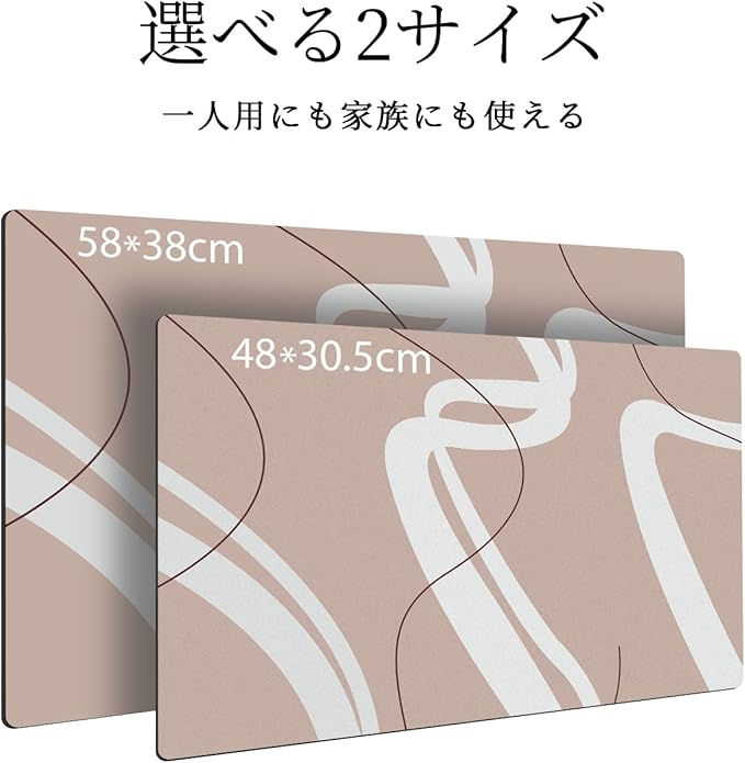 【自由カット・収納便利】 ソフトバスマットは従来の硬い珪藻土のバスマットより柔かい材質のため、用途に合わせて好きな形にカットできます。立てかける場所を取る物より、最新型のソフトバスマットはコンパクトで収納しやすく、どこにでも置けるので使い勝手が良いです。軽くて厚さは0.4cm前後なので、ちょっとした隙間があれば収納できます。