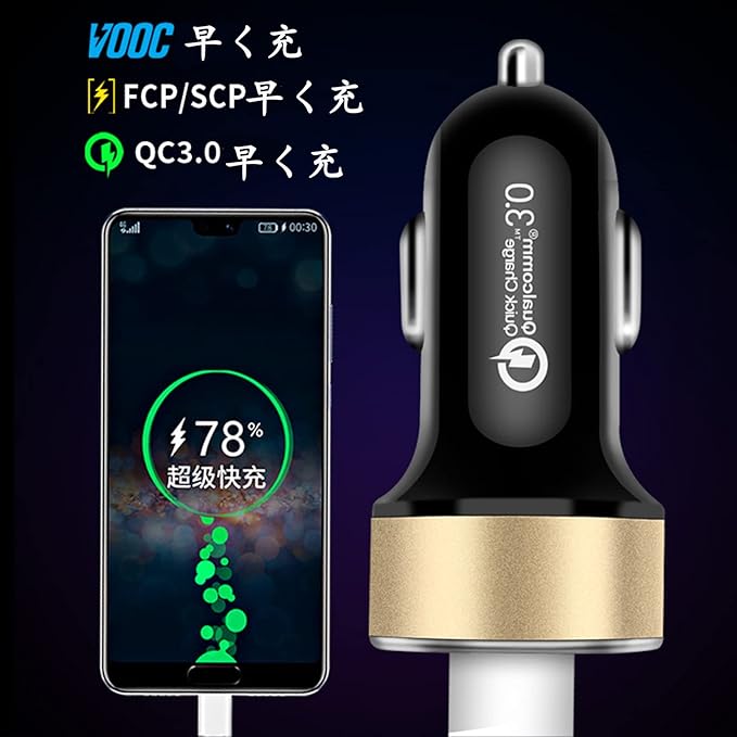 【端末2台同時充電可能⚡】QC3.0+2.4Aデュアルポート36w。車の充電器は、QC3.0の速度充電し、0〜70%を30分間で充電できます。你可以同时全速充电两部手机。ご注意:iPhoneにQC3.0 急速充電を対応できないが、充電速が12W/2.4Aまで出力できます。