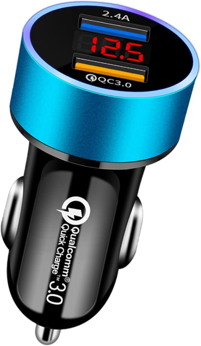 YUGYUG 車載充電器 カーチャージャー usb [QC3.0ポート] 36W/6A 最新型 電圧計 シガーソケット LED表示 12V~24V 急速充電器 カーチャージャー 車 充電器 高速車の充電器 ほとんどのブランドの携帯電話なと対応 (ブルー)