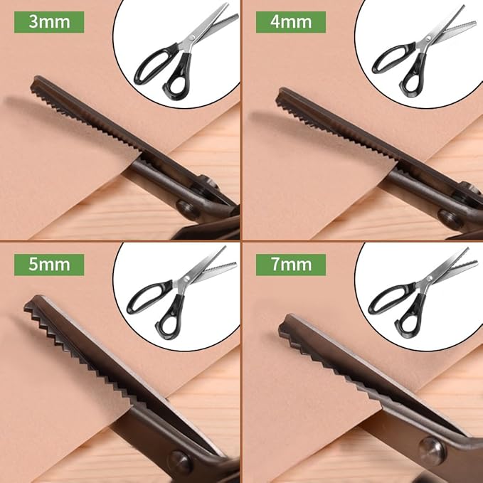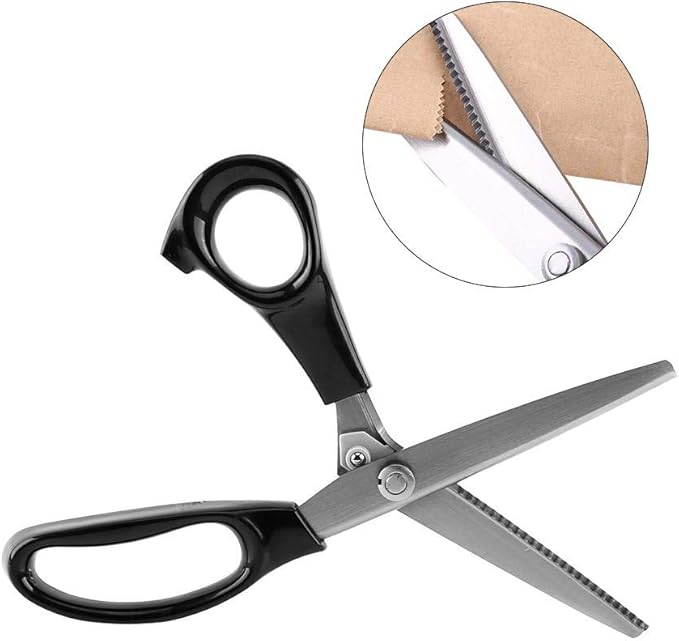 Qiilu ピンキングはさみ ステンレス製 布切り手芸 洋裁鋏 三角形歯 DIY 綿布 紙 織物 業務用 事務裁断用(3mm)