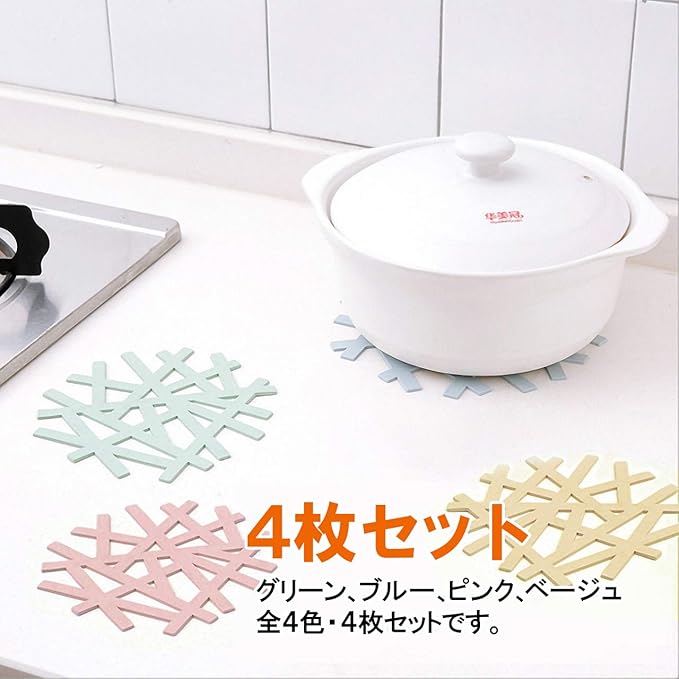 NP 鍋敷き シリコン 耐熱 滑り止め ポットスタンド キッチン用品 (中4枚セット)