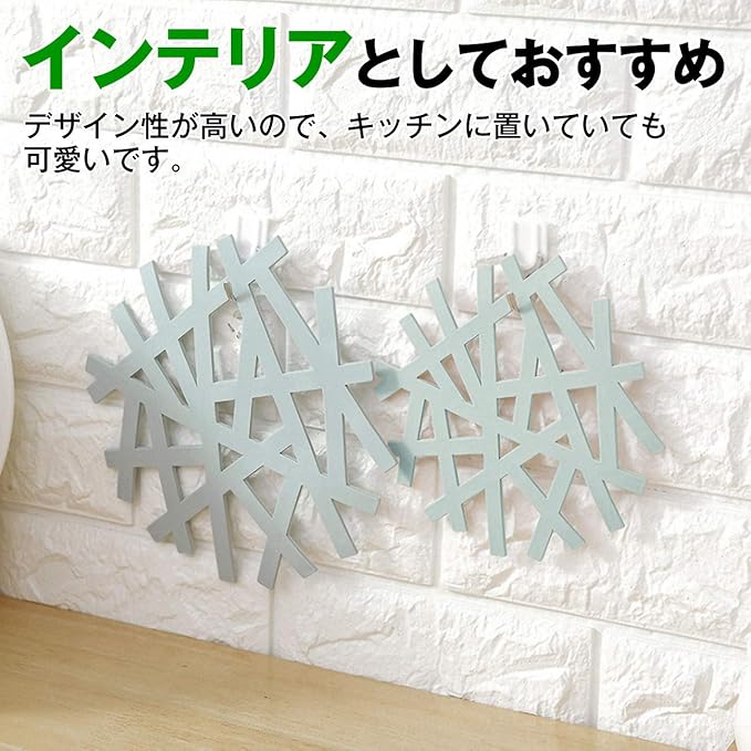 北欧風の木の枝を幾何学的にデザインしたおしゃれなシリコン製の鍋敷きで、キッチンや食卓を楽しく演出してくれます。使わない時はテーブルを豊かに彩るワンポイントに、穴があるのでキッチンの壁に掛ければキュートなインテリアにも。