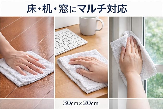 ●吸湿性・速乾性に優れた綿100%素材 ●お部屋のお掃除や車のお手入れなど色々使えて大活躍●かけひも付き お子様の学校用に ●30枚入り 業務用としておすすめ