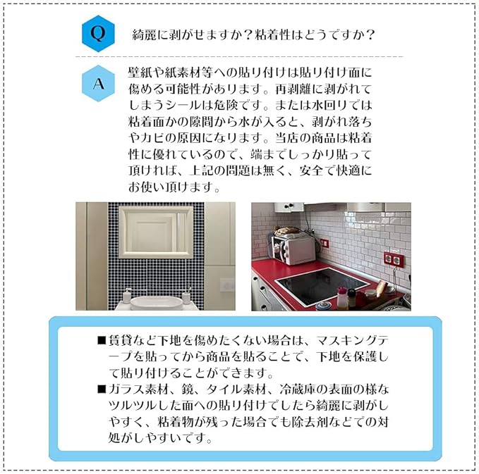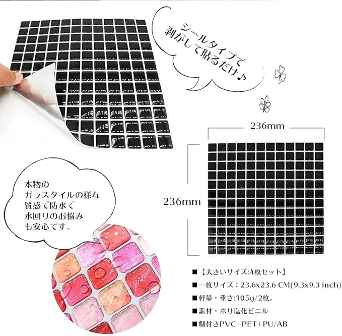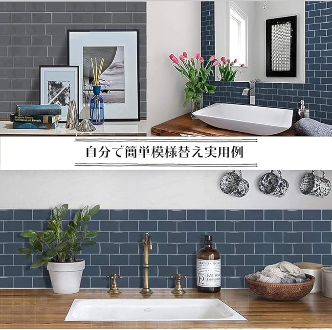 【簡単作業】素手DIYリフォーム模様替え・貼り付けも簡単で、接着材や目地材は不要です、台紙から剥がしてそのまま貼り付け出来ます。