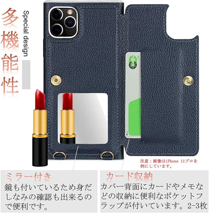 【機能性:】①ICカード収納 :背面には便利なカード収納ポケットを備えているので、2-3枚カード&お札収納可能、取り出しやすいし、ズボンにも入られる激薄タイプです②ミラー付き : iphone 11 pro Max手帳型ケースの内側にはミニミラーがデザインされています。だからメイクをチェックしたり、お化粧を直したり、食事後のオーラルチェックに最適。
