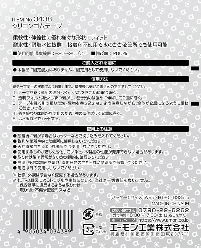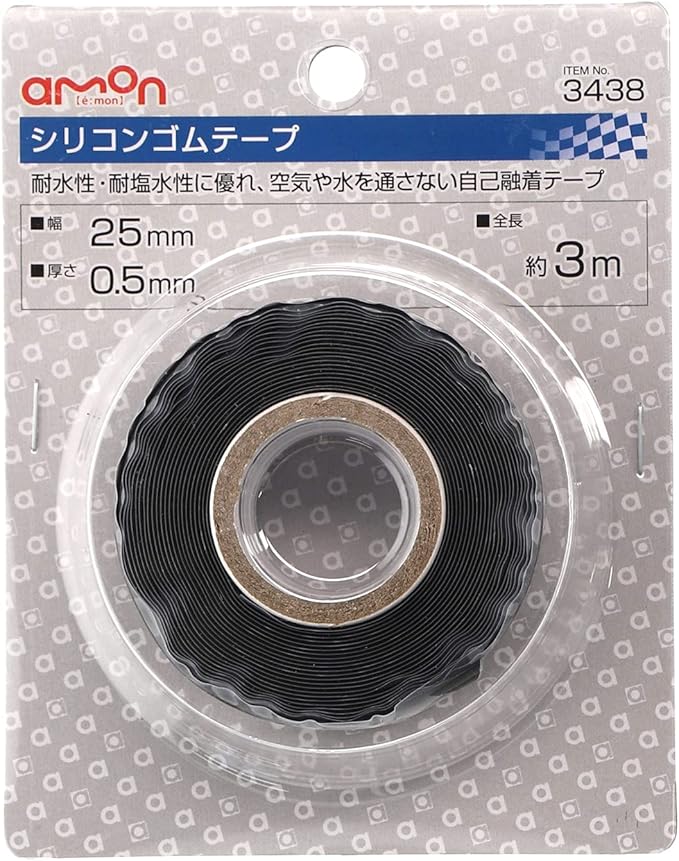 エーモン(amon) シリコンゴムテープ 幅25mm 厚さ0.5mm 全長約3m 3438 黒