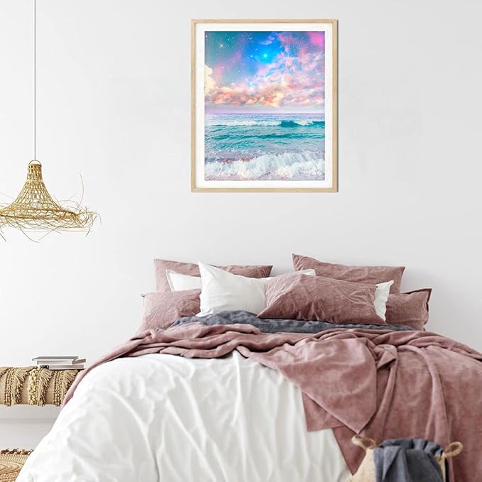 5d ダイヤモンドアート 風景 ダイヤモンド塗装キット ダイヤモンドペインティング 刺しゅうキット 全面貼り付けタイプ ビーズアート 手作り絵画 手芸キット クロスステッチキット ハンドメイド DIY 家の壁の装飾 40x30cm 海と空