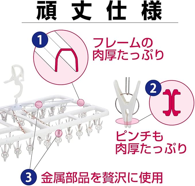 洗濯物にピンチの跡が付きにくいため、お気に入りの衣類も安心して干せる。