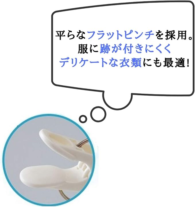 平らなフラットピンチを採用。服に跡が付きにくく、デリケートな衣類にも最適